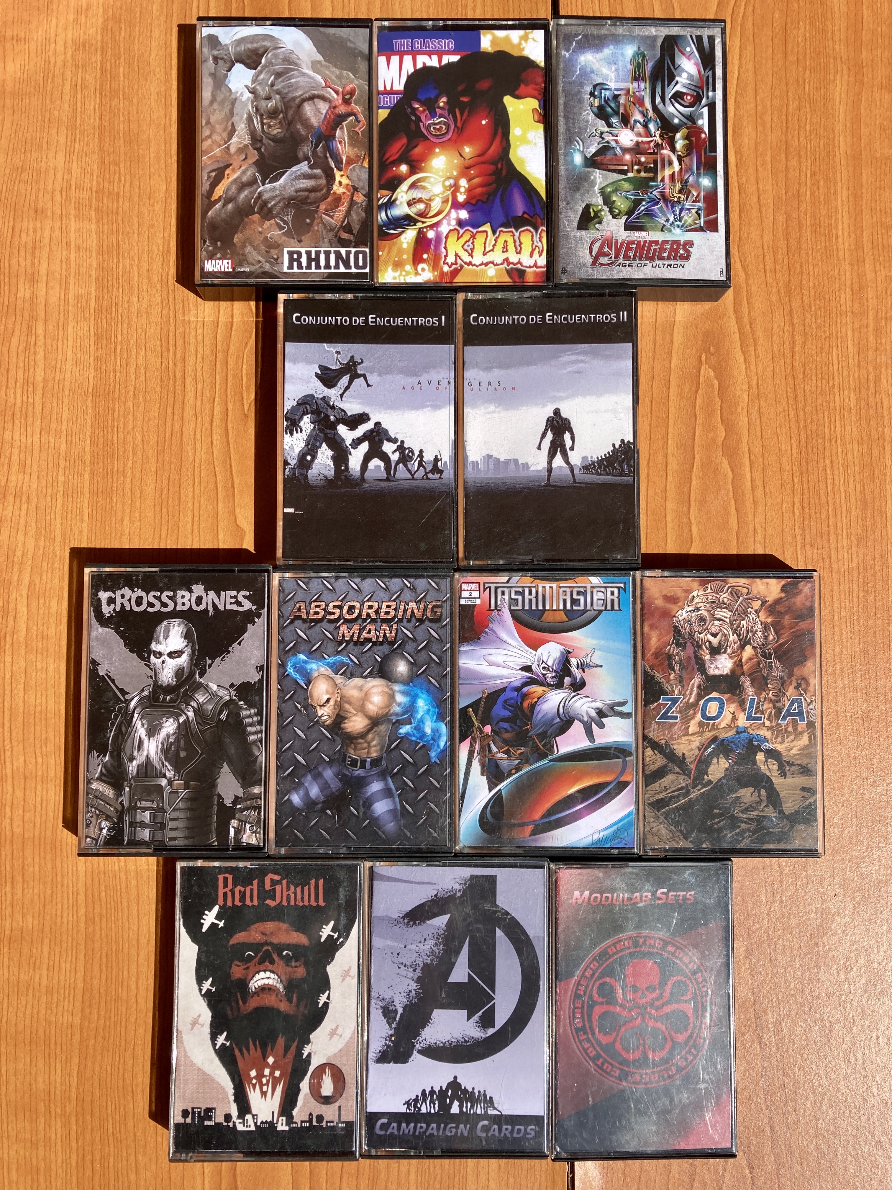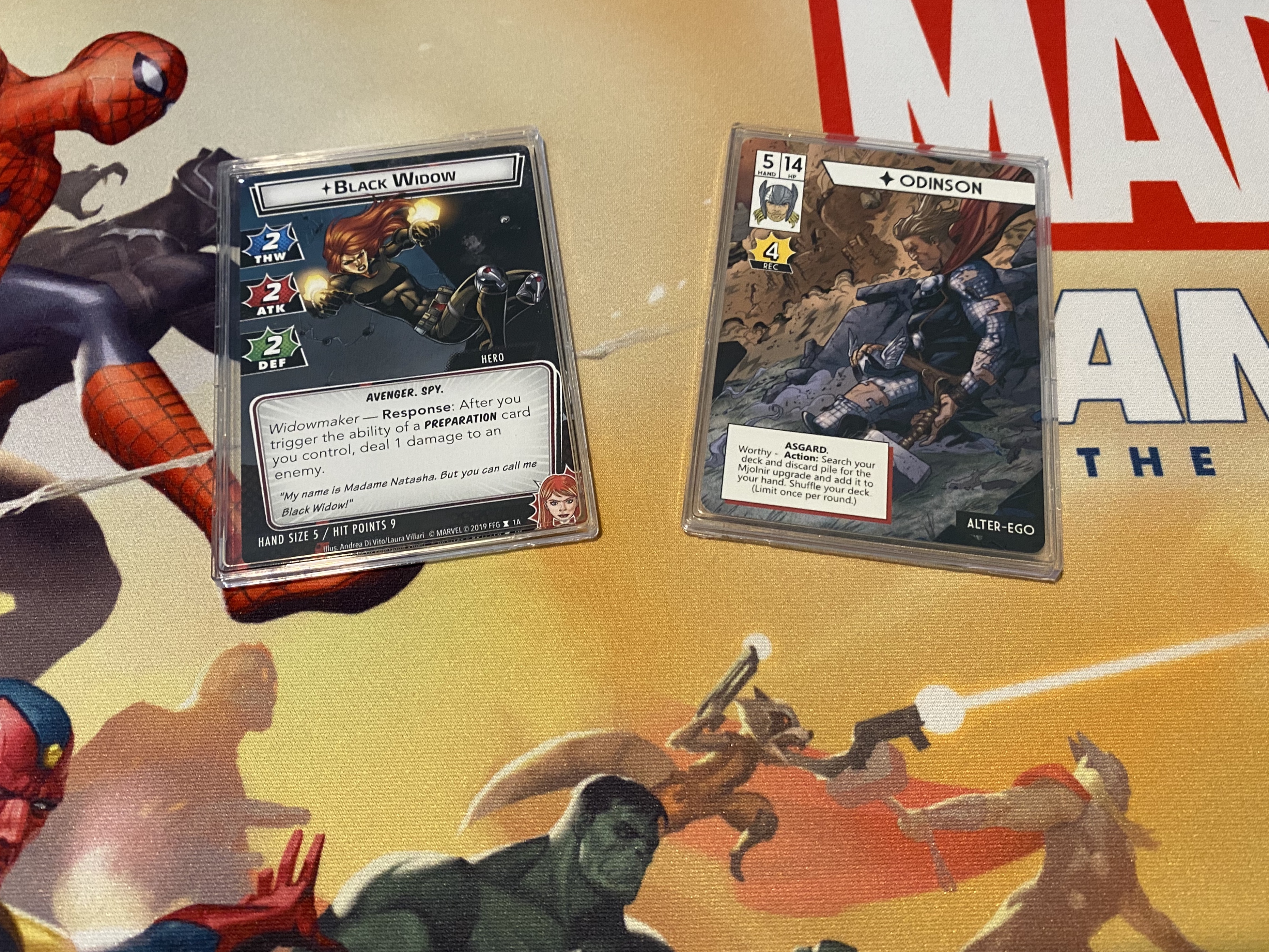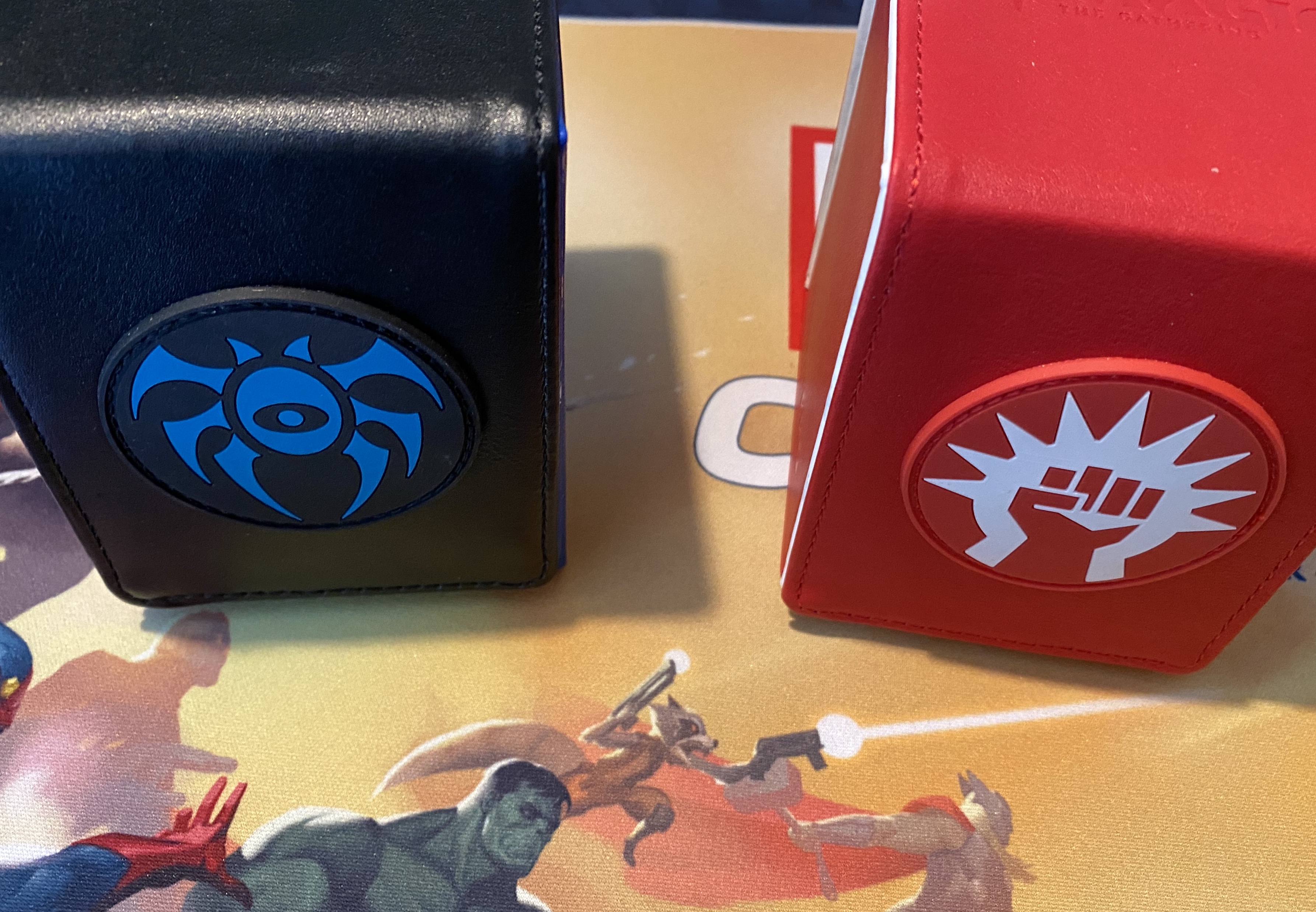 As for the deck boxes, each box is catered to a specific hero, usually corresponding to the logo/color (Black Widow is on the left, Thor is on the right). All contain a pre-built deck for every hero (perfect for get-togethers pre-and-post-pandemic), obtained through multiple core sets and buying two of every hero pack.