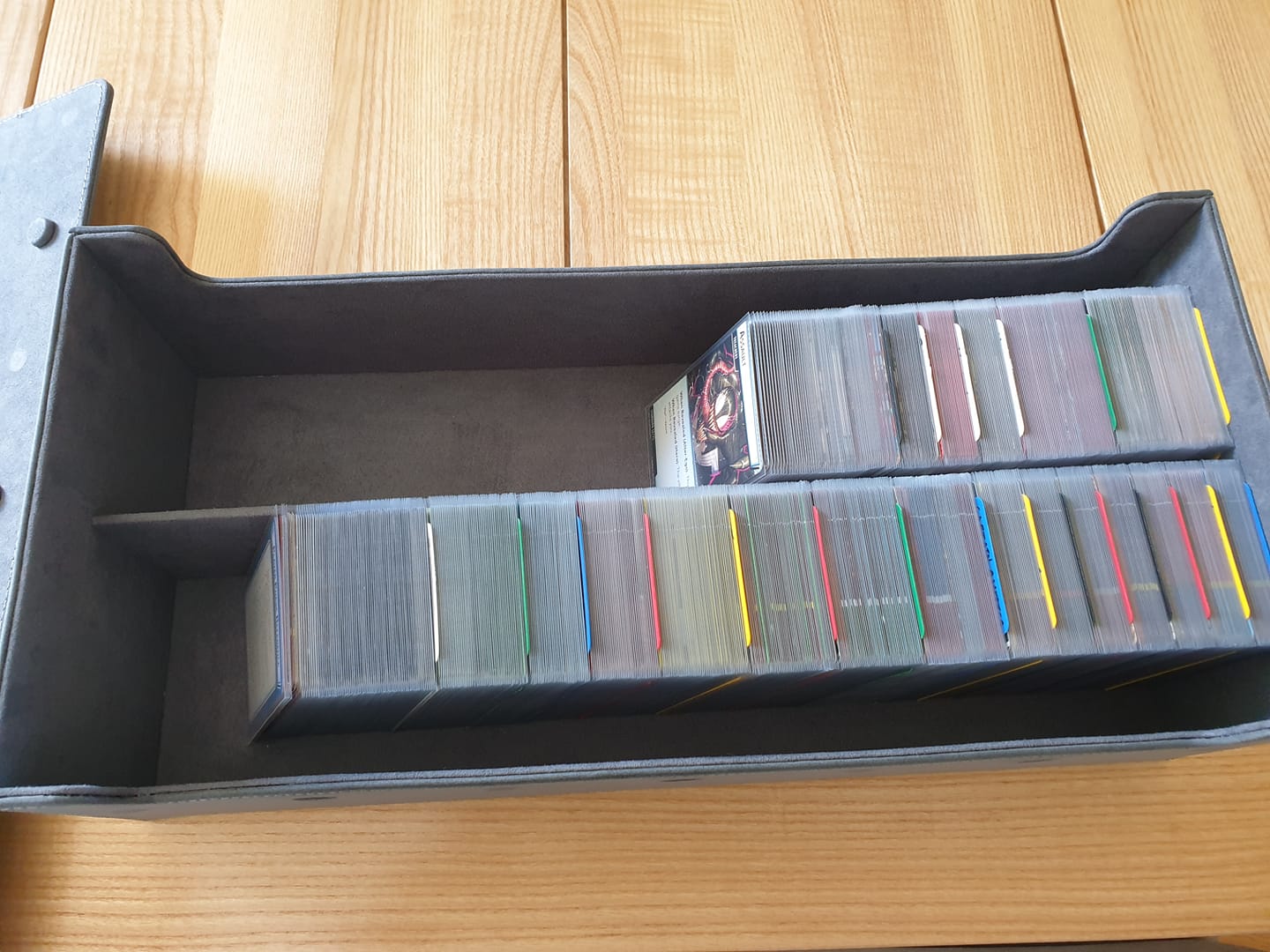 Several community members have recommended the “Moppe” box from IKEA. It’s a cheap $20 wooden box that allows for card storage. Here’s a tutorial for how to better use it for storage.