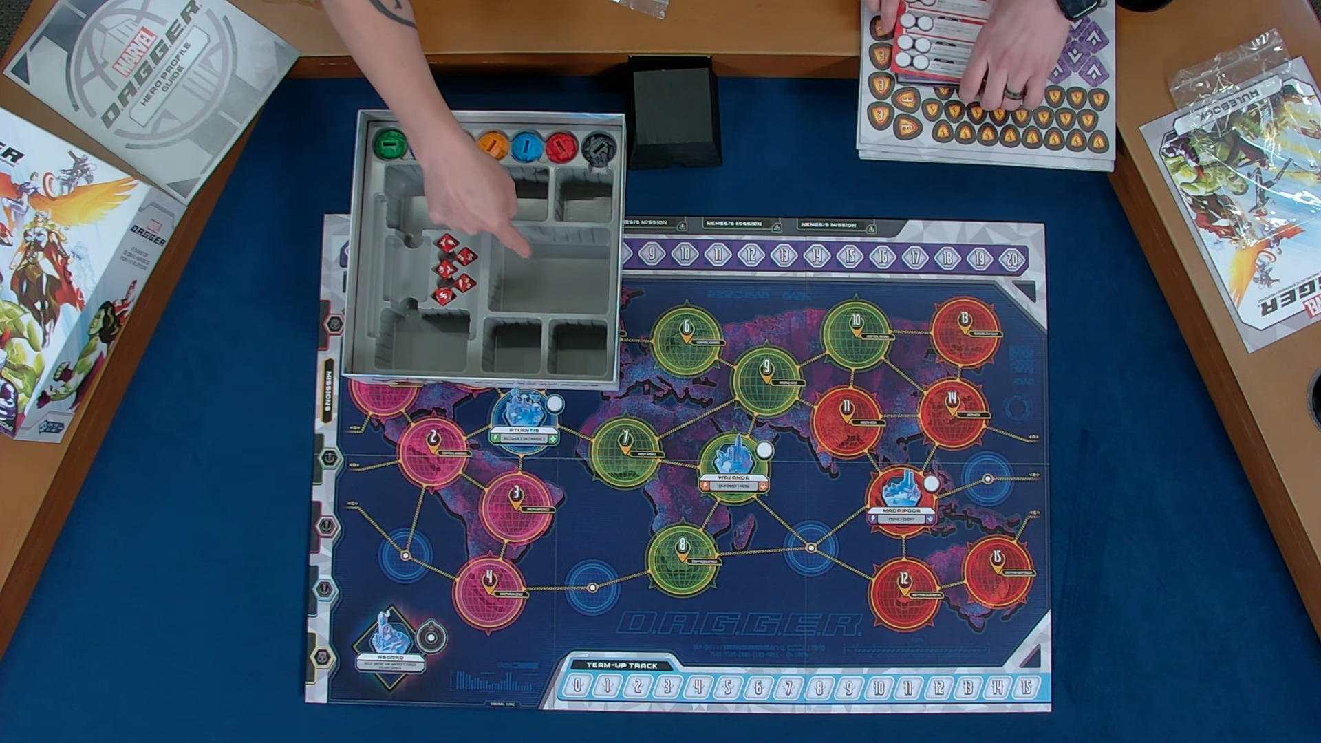 On May 24, 2023, Fantasy Flight Games held an FFG Live stream featuring Marvel Champions and Marvel DAGGER. Xander Tabler filled-in for Josh Massey as the host of FFG Live, with Marvel Champions lead designers Caleb Grace and Tony Fanchi as well as producer Molly Glover and DAGGER designer Dane Beltrami.