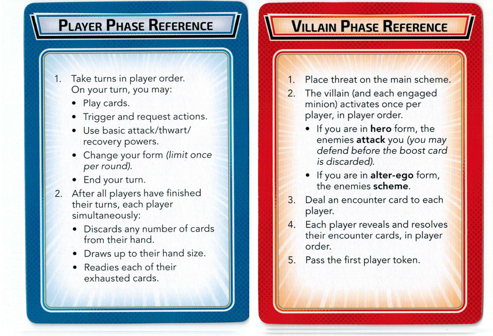 Rules Reference Guide | Learn to Play | Player Phase Reference (cheat sheet) | Rulings | Back of Box