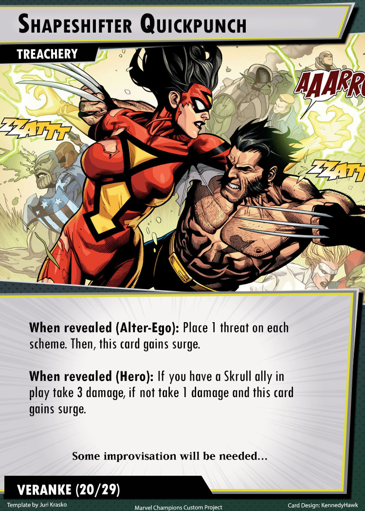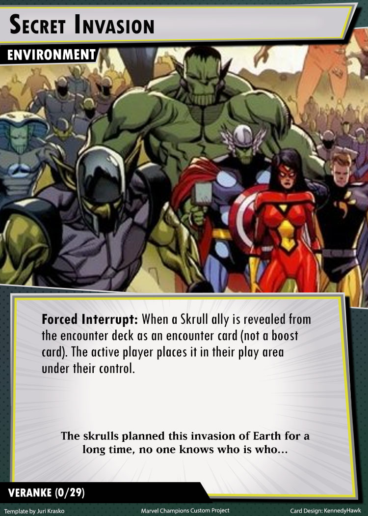 In this drought that doesn’t have a foreseeable end date, Hall of Heroes has reached out to custom content creators in an effort to keep interest in Marvel Champions through “Quarter 4,” when the new story box is set to arrive. More custom content will pop up from time to time.