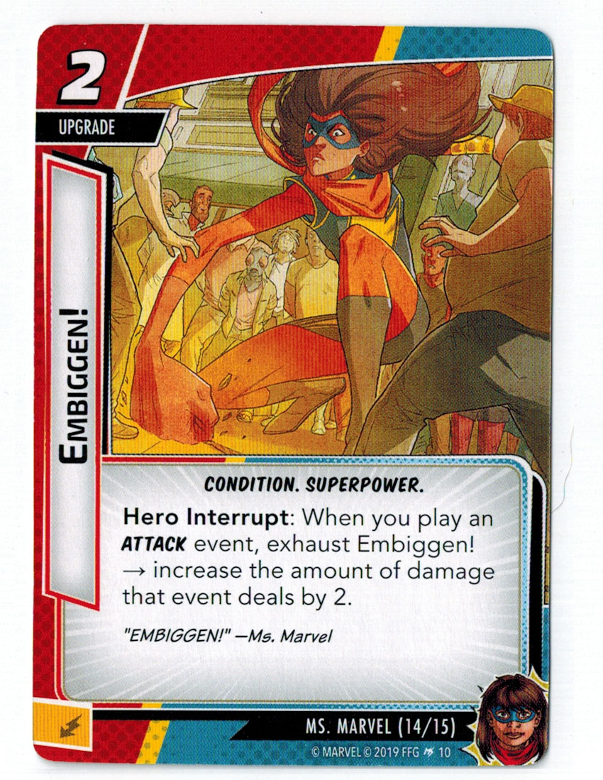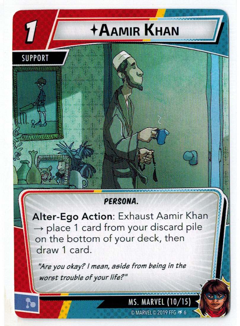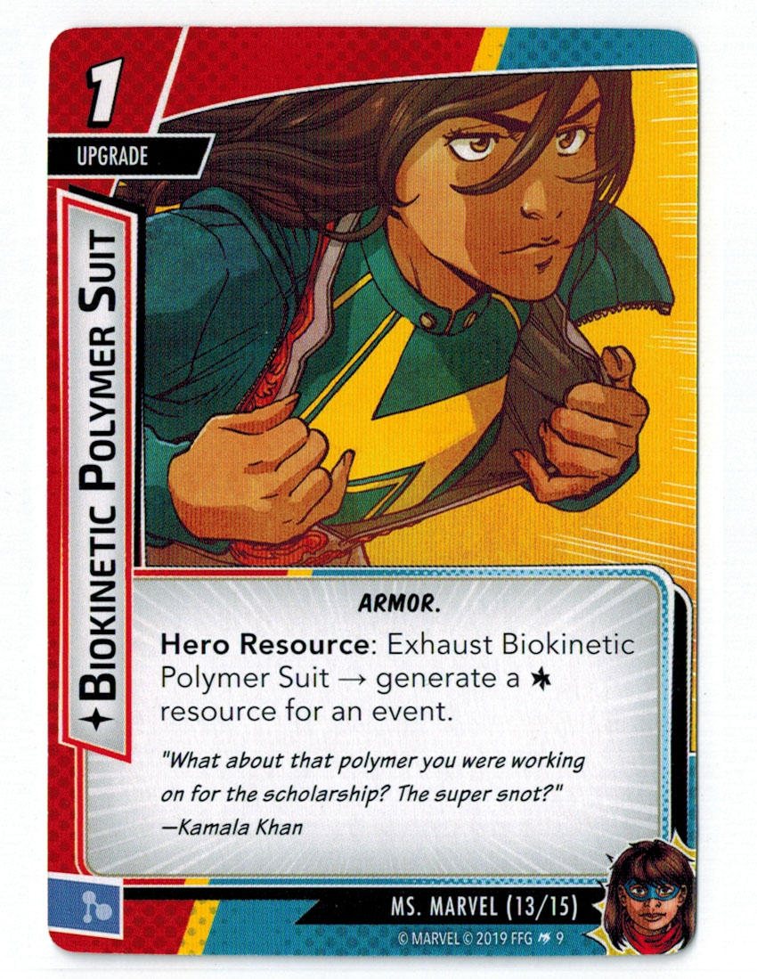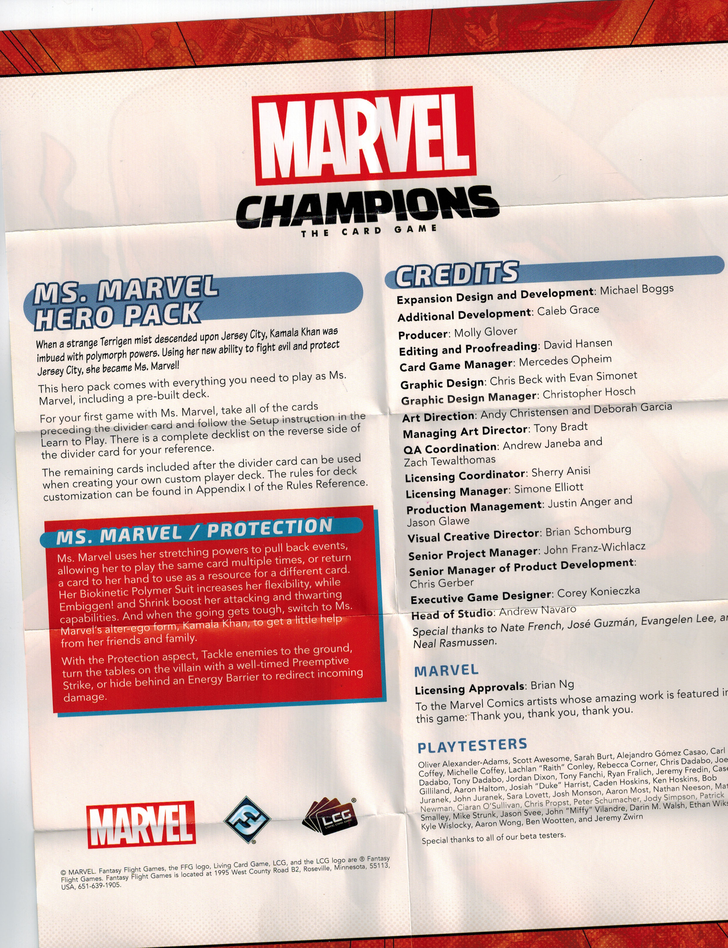 Kamala Khan/Ms. Marvel Release date: December 20, 2019Previous release | Next release Lead Designer: Michael Boggs Insert | Rulings | Starter Deck | News Article | Poster | Playmat Art | Back of Box