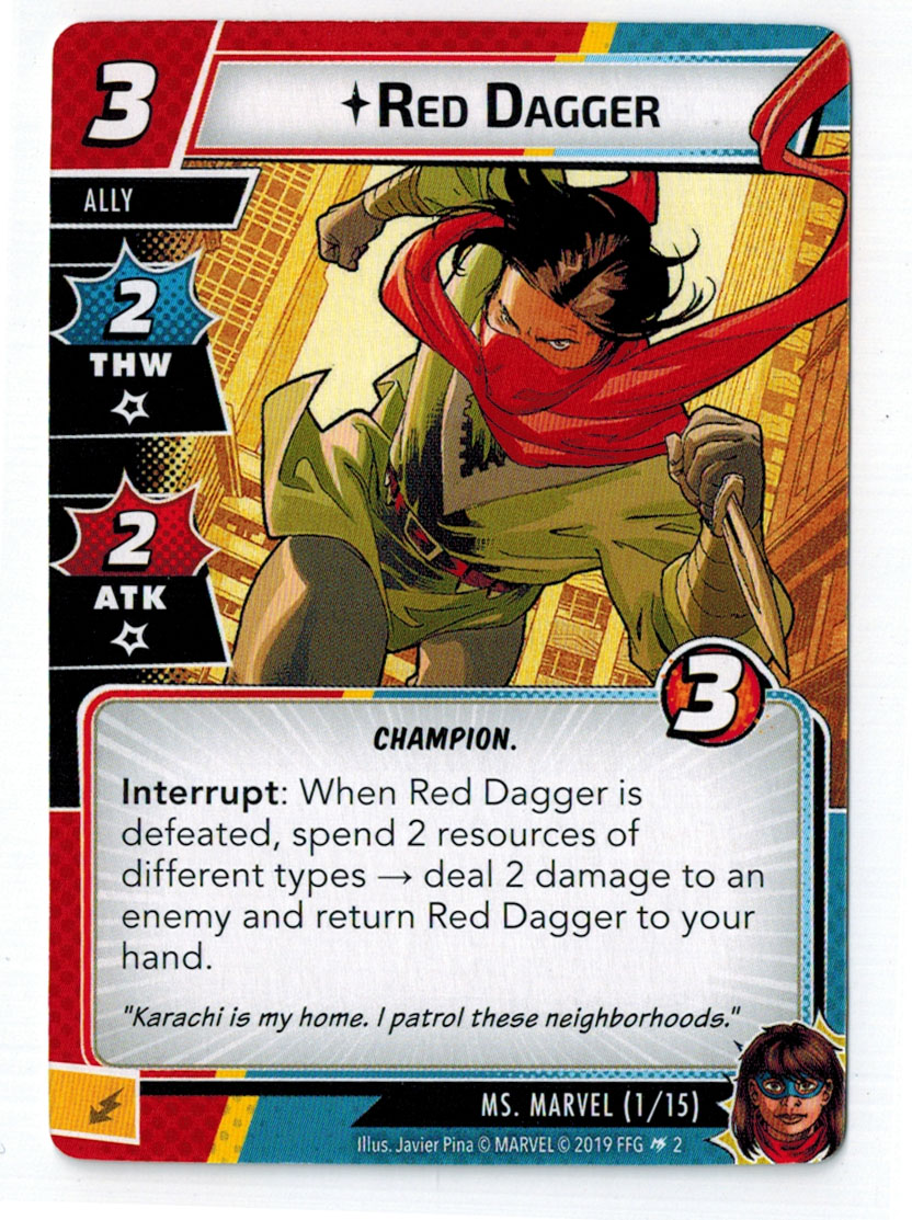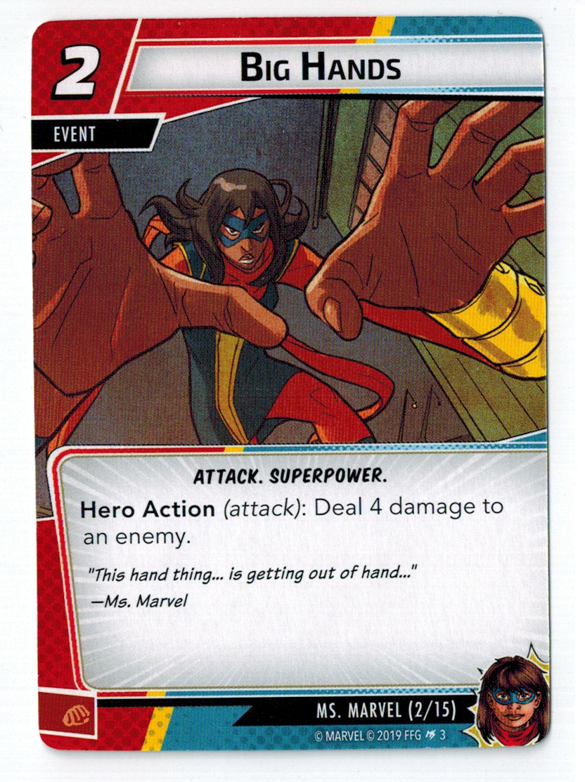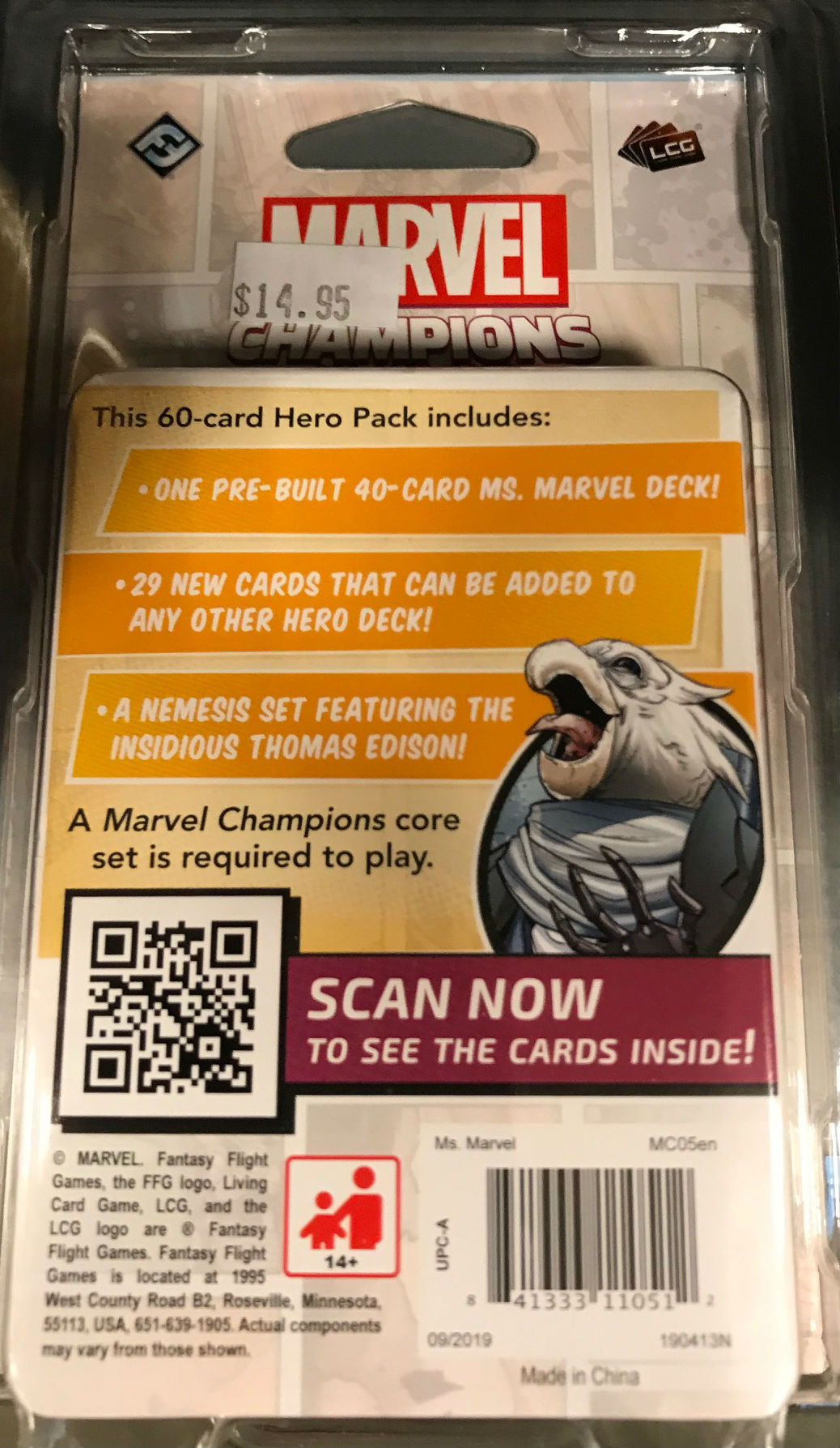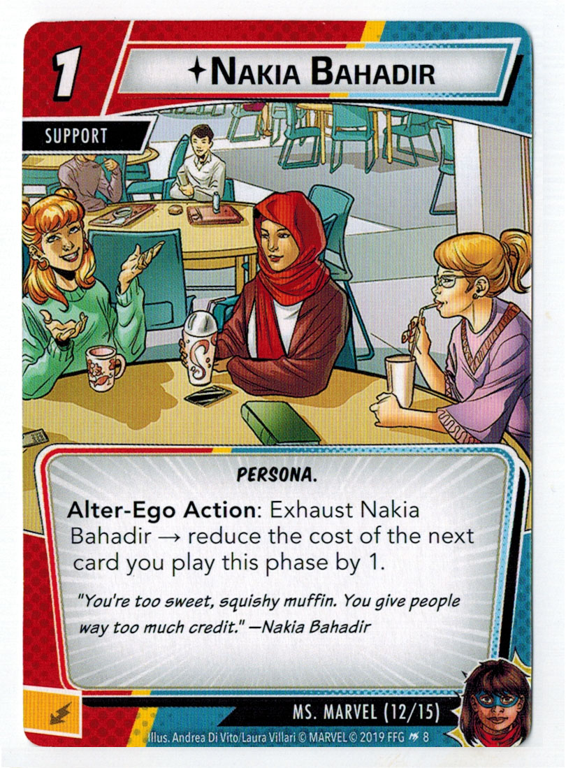 Kamala Khan/Ms. Marvel Release date: December 20, 2019Previous release | Next release Lead Designer: Michael Boggs Insert | Rulings | Starter Deck | News Article | Poster | Playmat Art | Back of Box