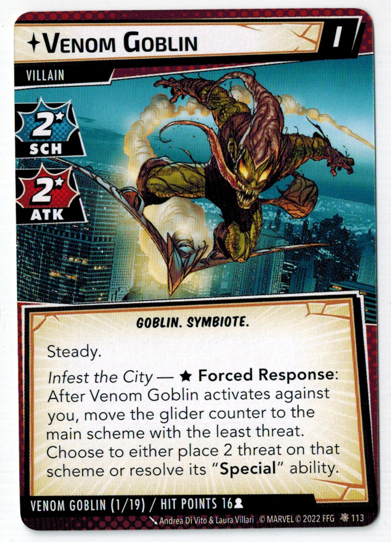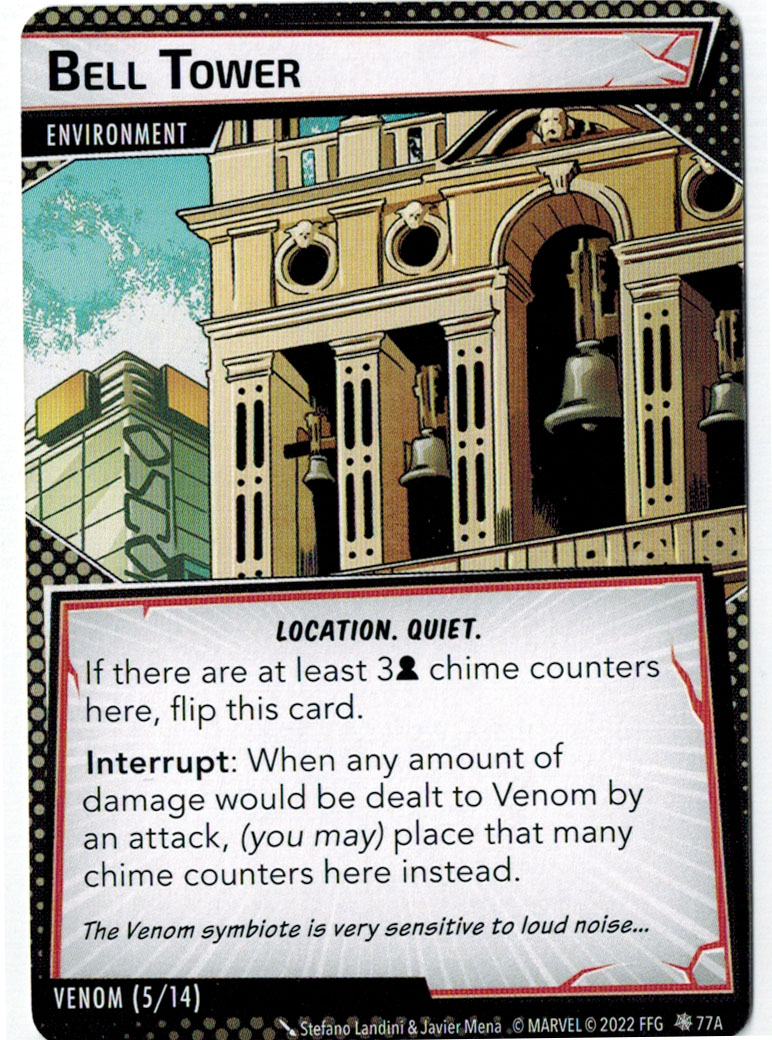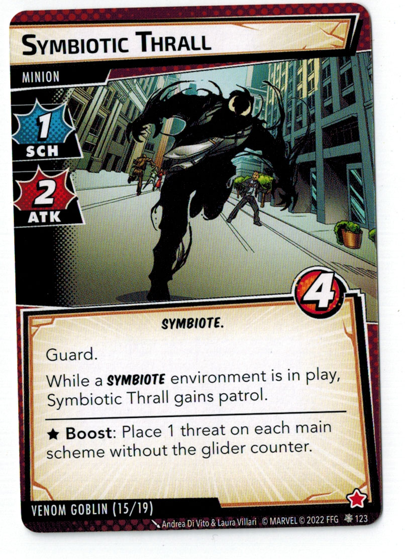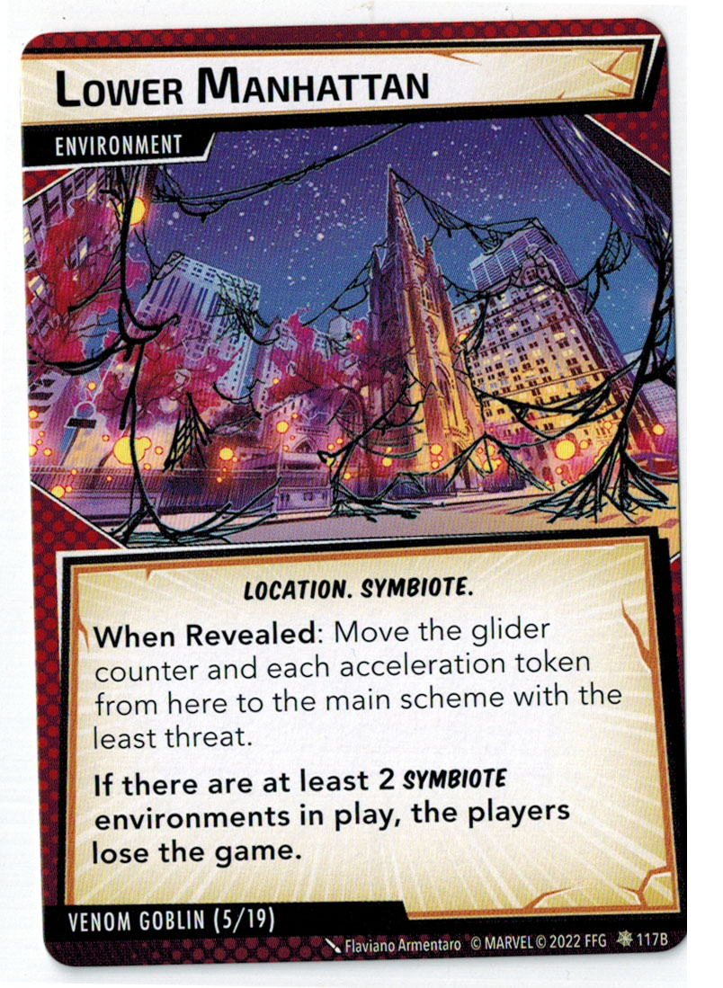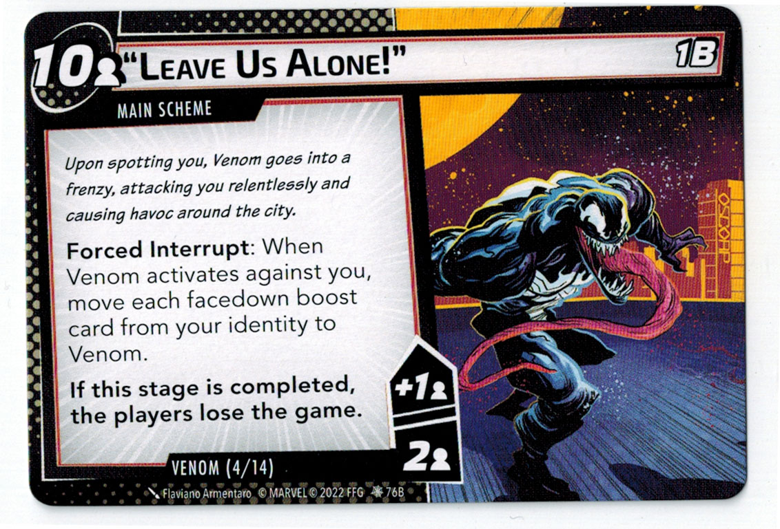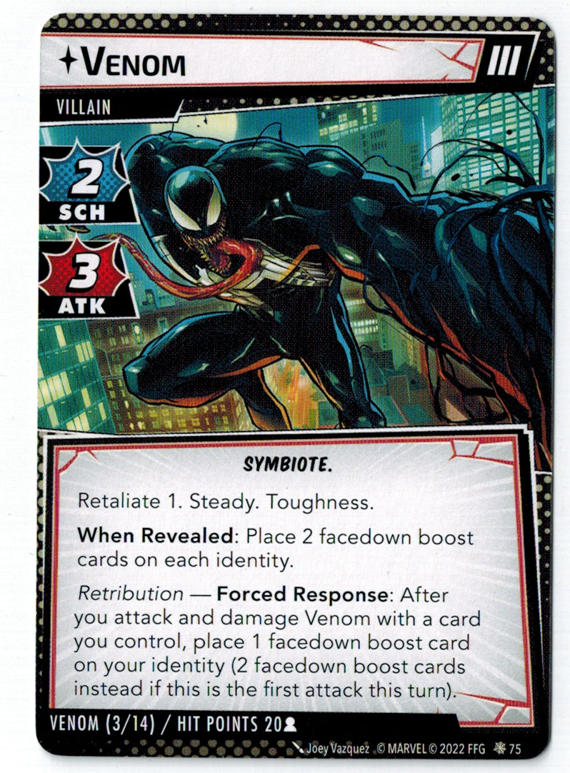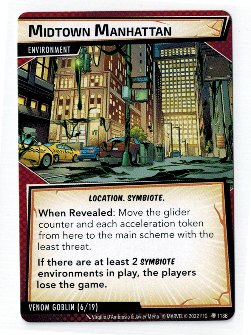 “The Symbiote Suit is just like the Venom ally, in that you can include it in any hero deck you want, unless you’re playing the Sinister Motives campaign, in which case you have to earn the ability to include it.” – FFG