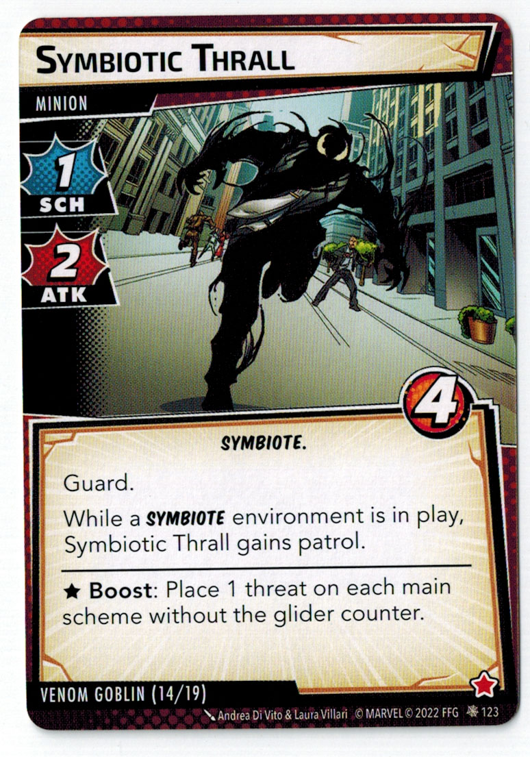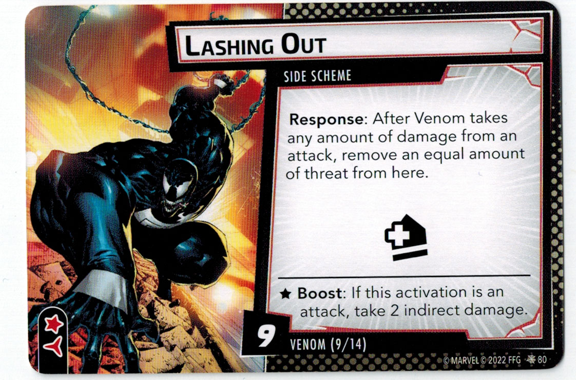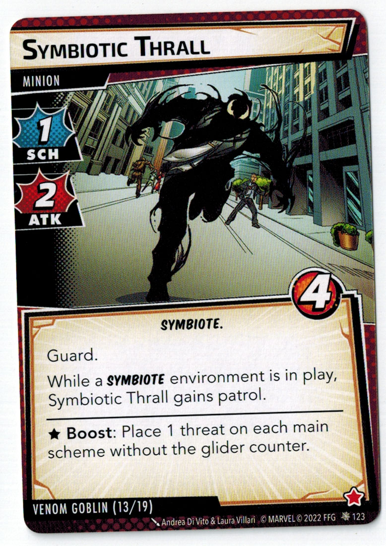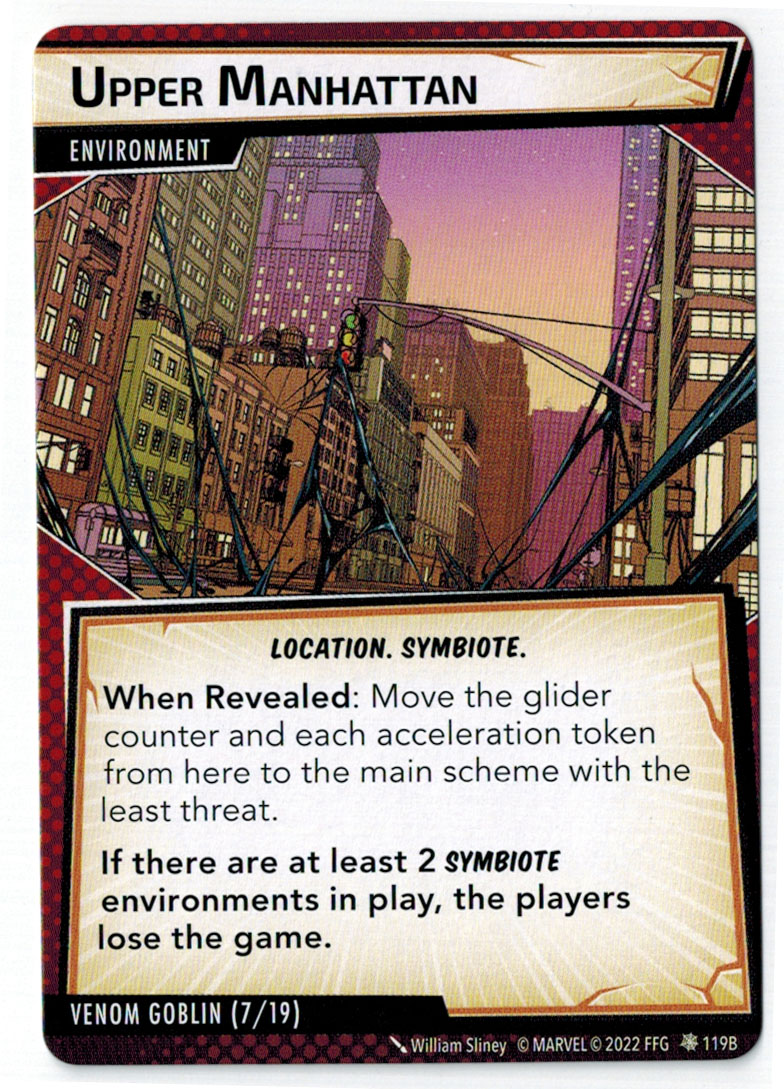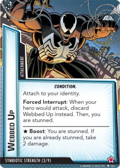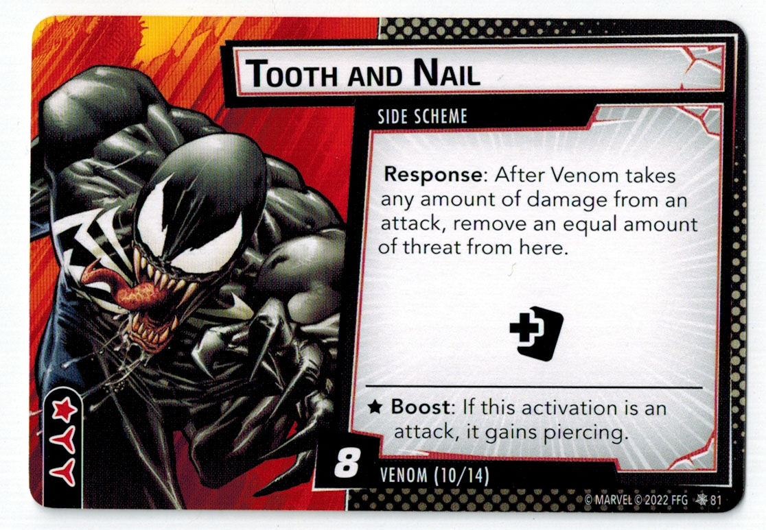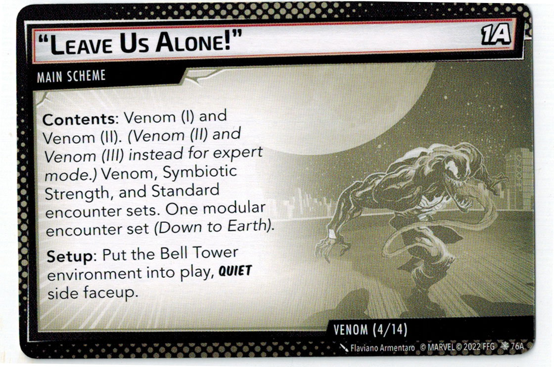“The Symbiote Suit is just like the Venom ally, in that you can include it in any hero deck you want, unless you’re playing the Sinister Motives campaign, in which case you have to earn the ability to include it.” – FFG