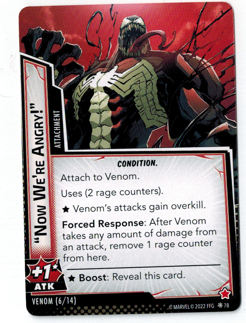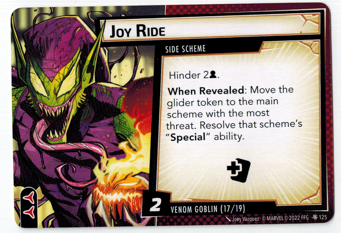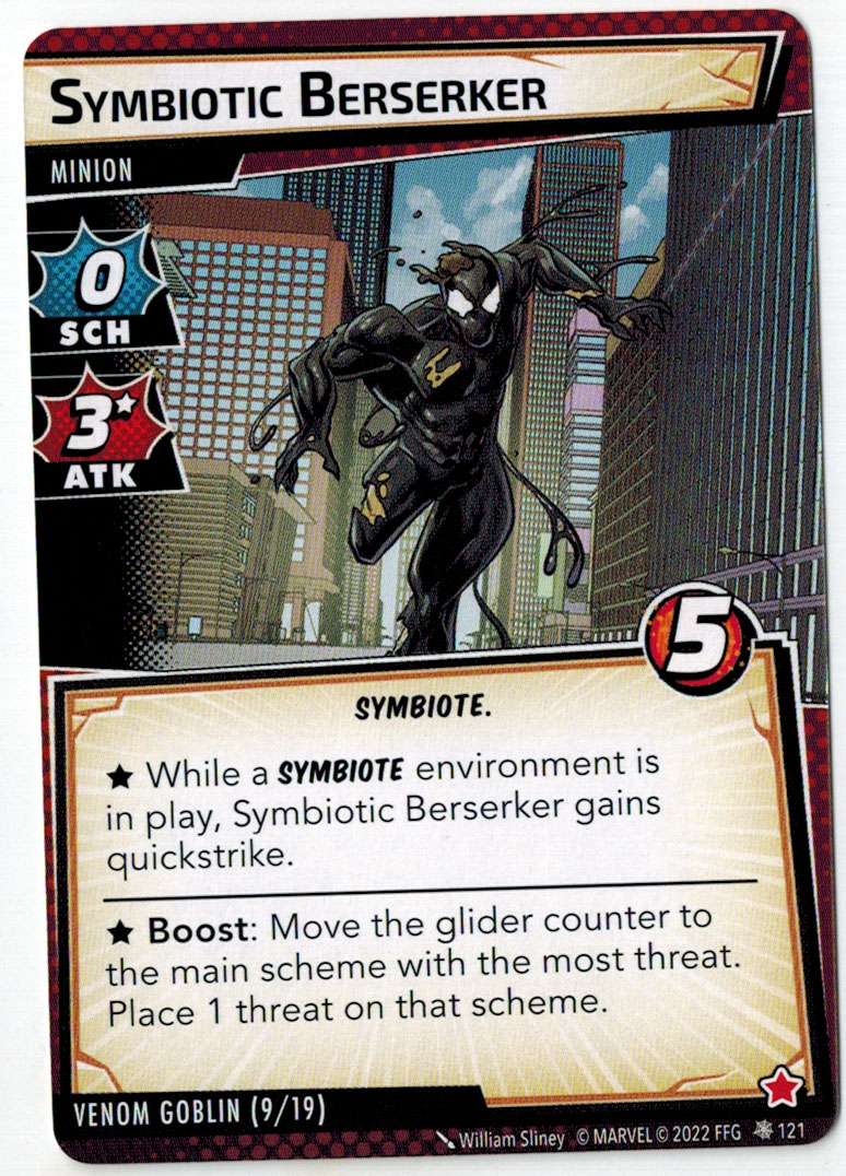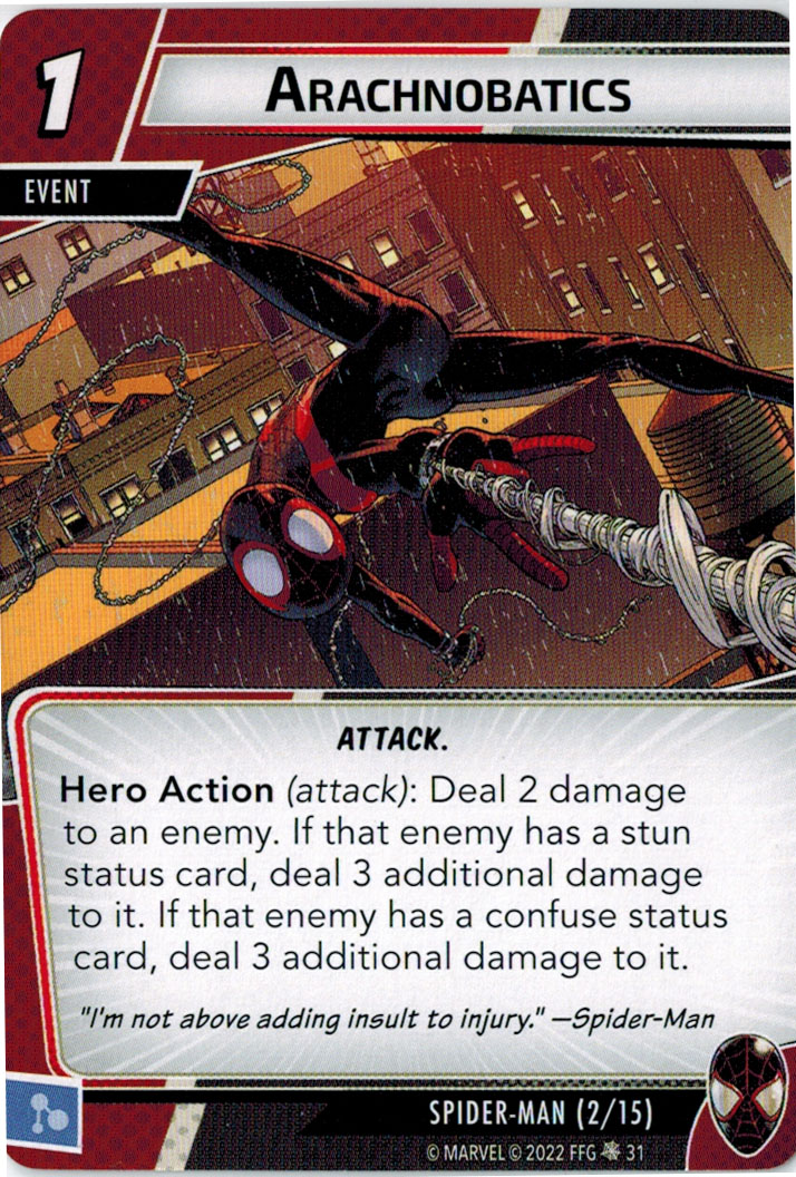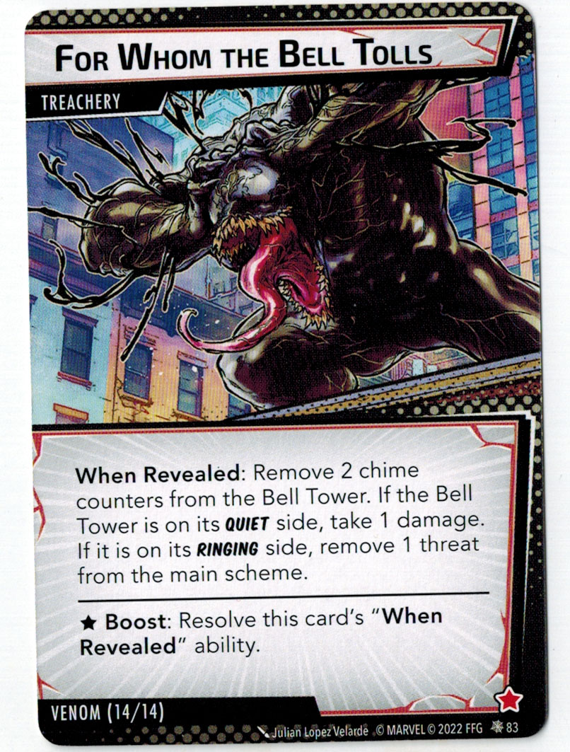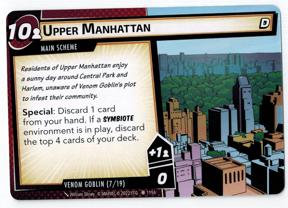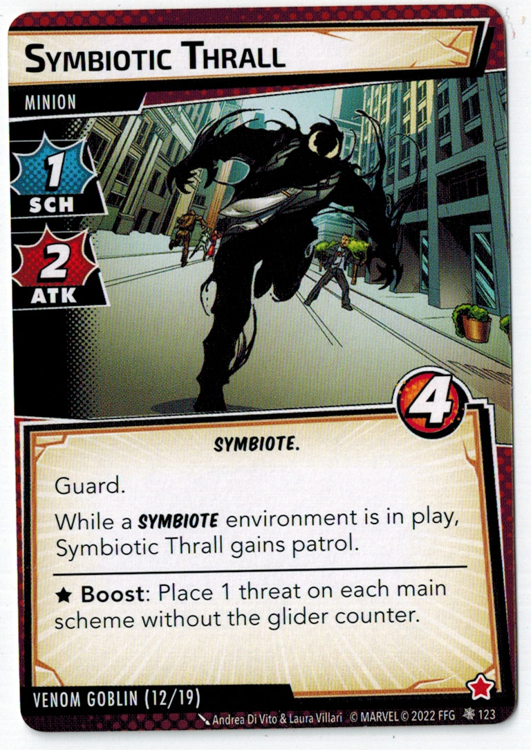 “The Symbiote Suit is just like the Venom ally, in that you can include it in any hero deck you want, unless you’re playing the Sinister Motives campaign, in which case you have to earn the ability to include it.” – FFG