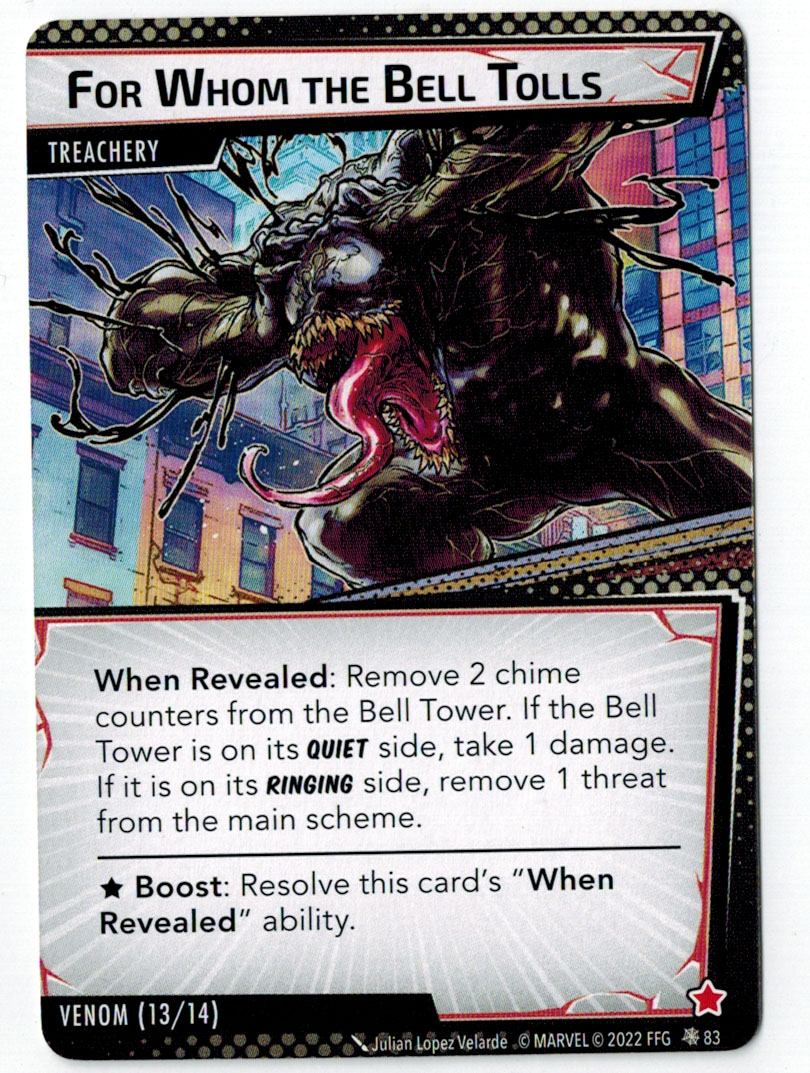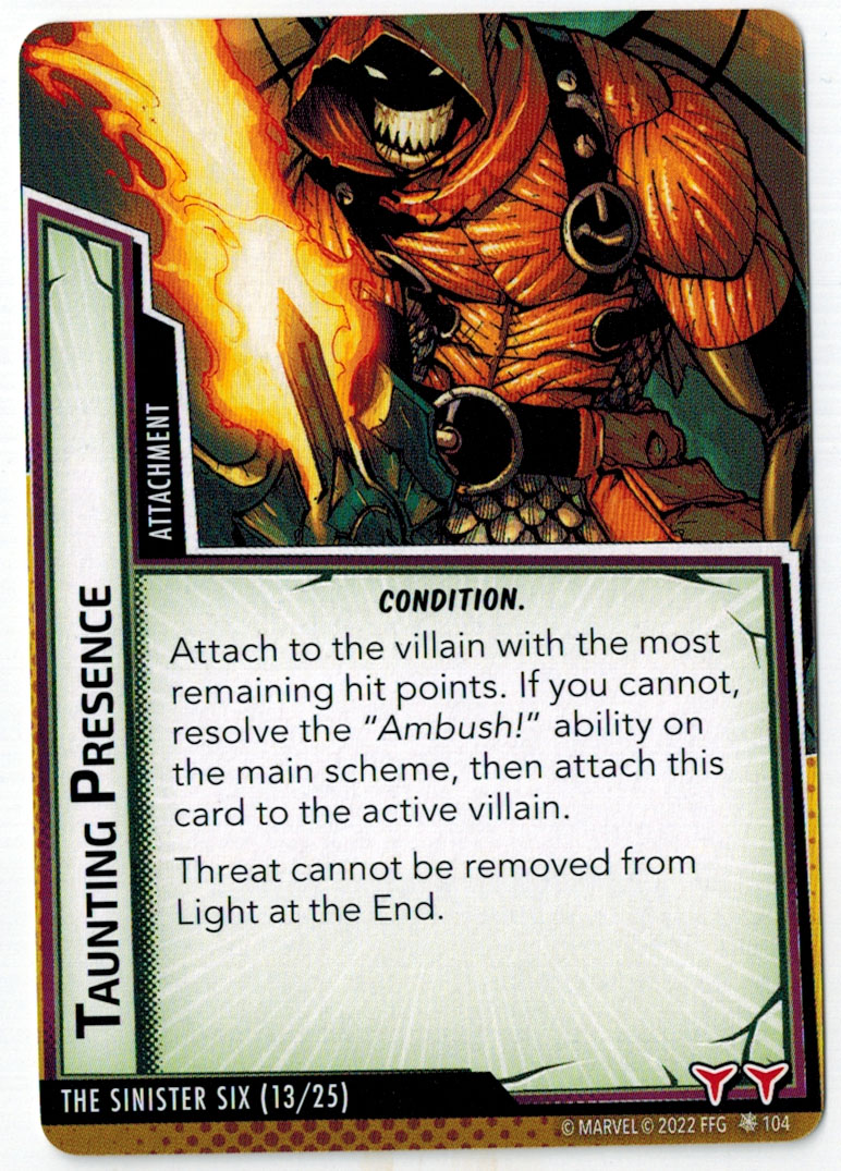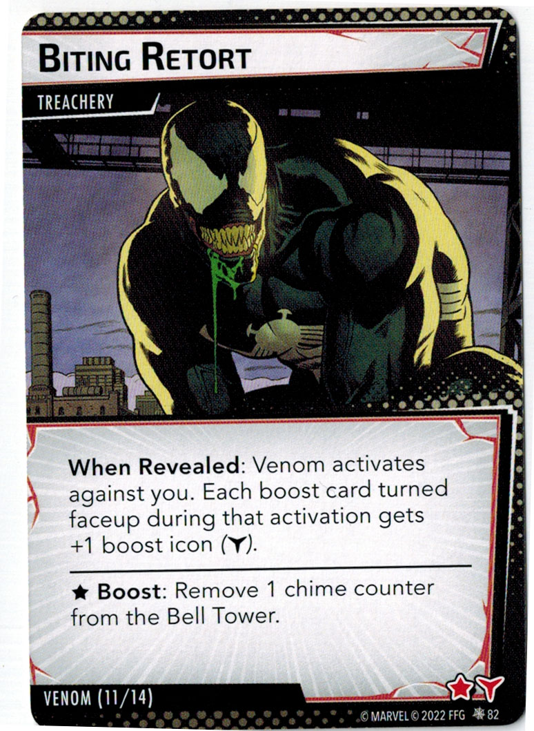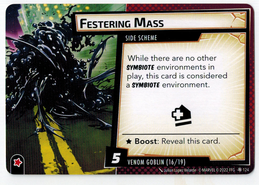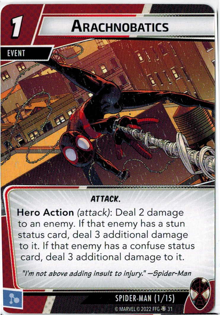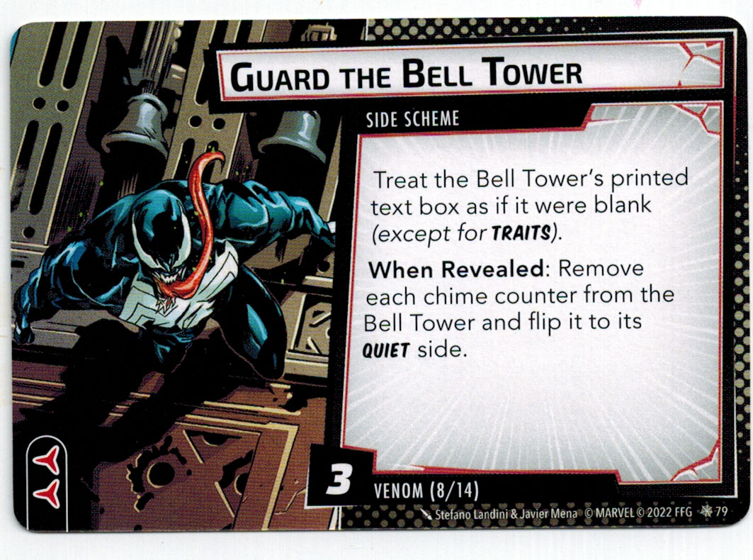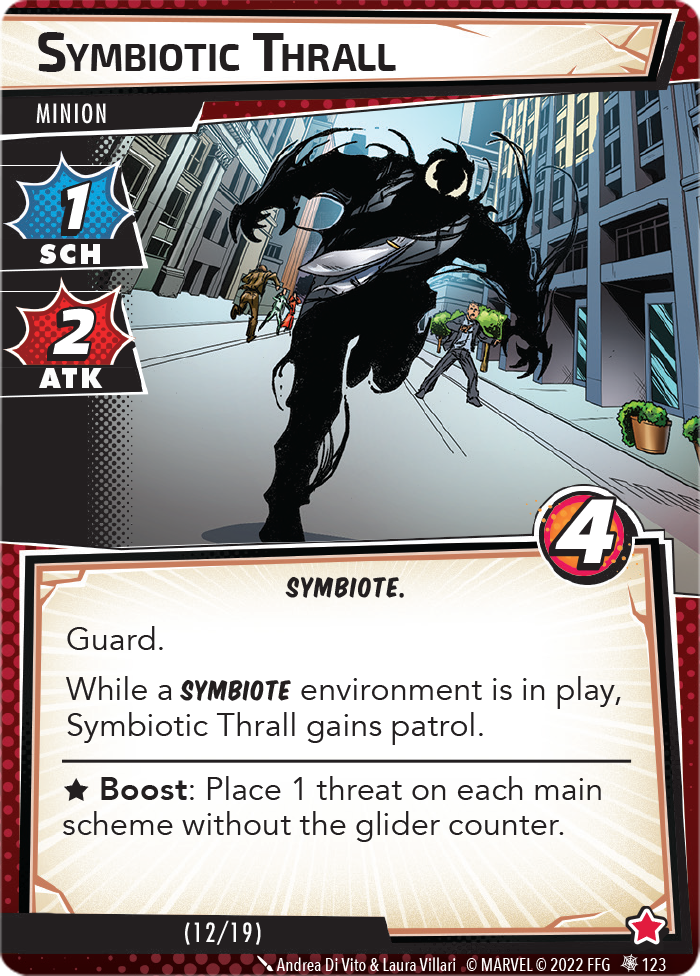 “The Symbiote Suit is just like the Venom ally, in that you can include it in any hero deck you want, unless you’re playing the Sinister Motives campaign, in which case you have to earn the ability to include it.” – FFG