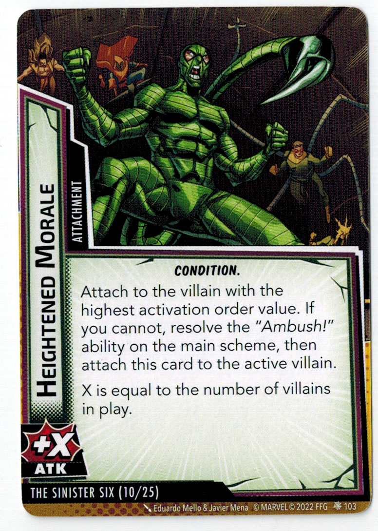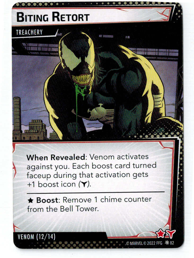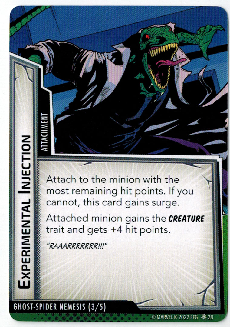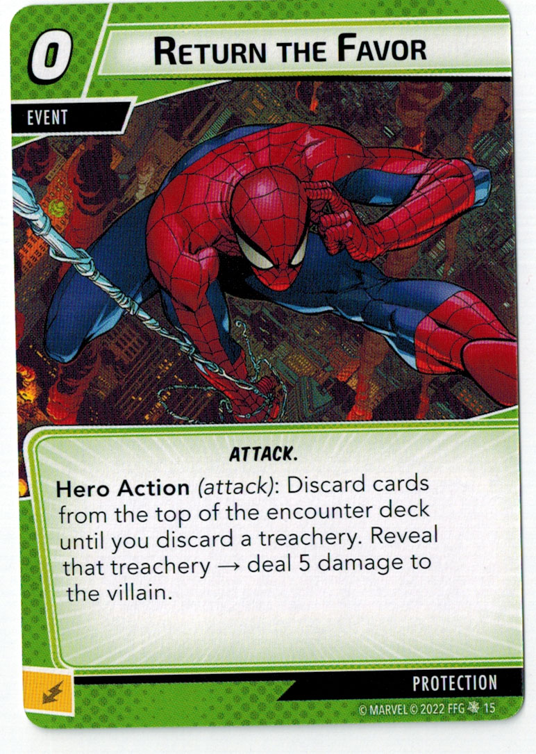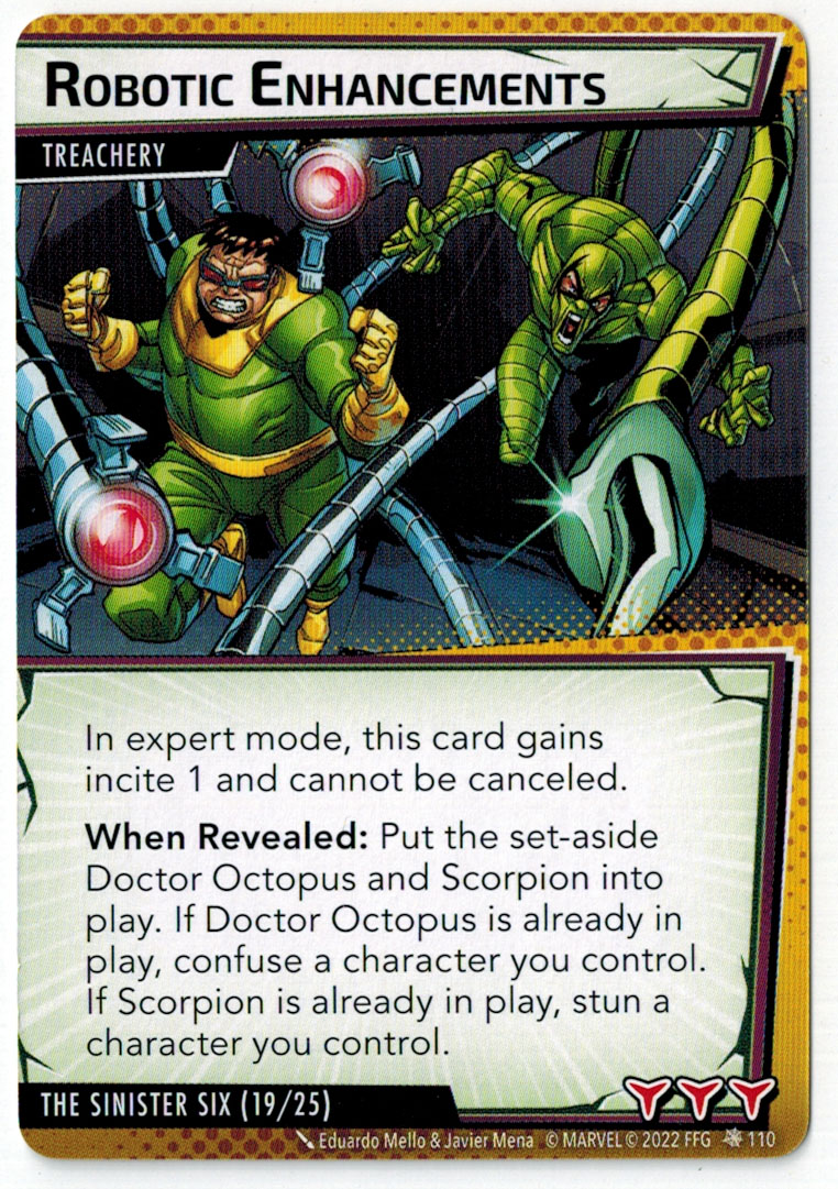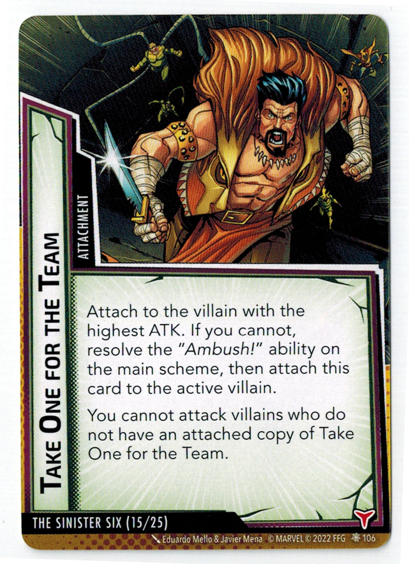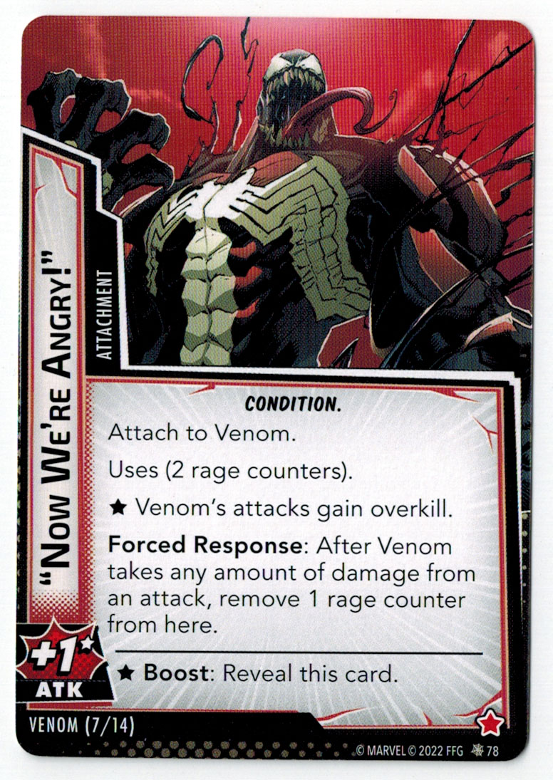 “The Symbiote Suit is just like the Venom ally, in that you can include it in any hero deck you want, unless you’re playing the Sinister Motives campaign, in which case you have to earn the ability to include it.” – FFG