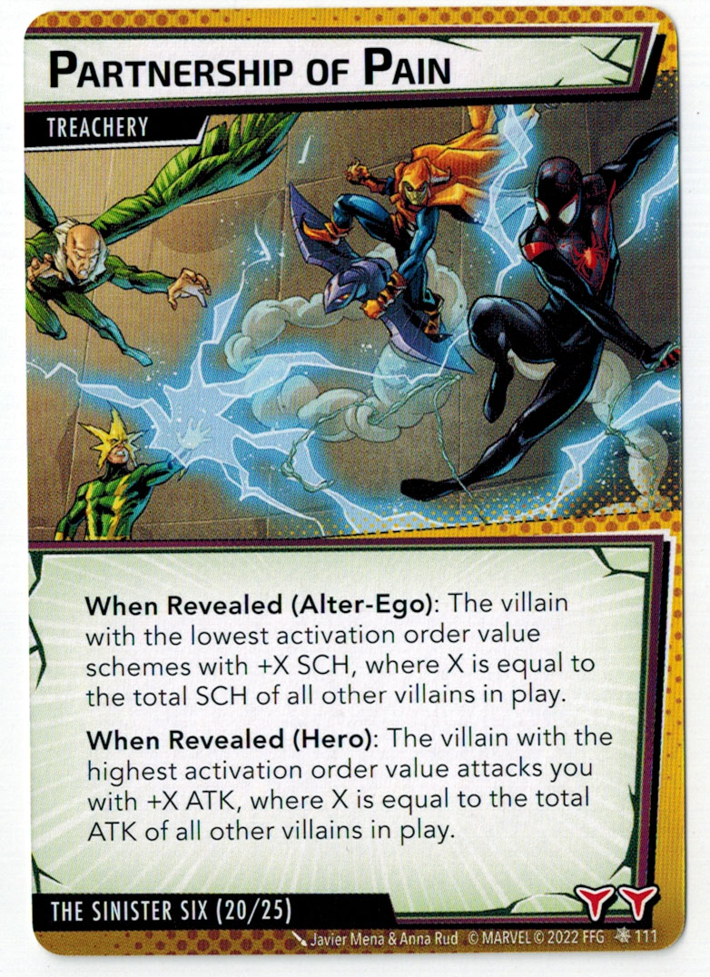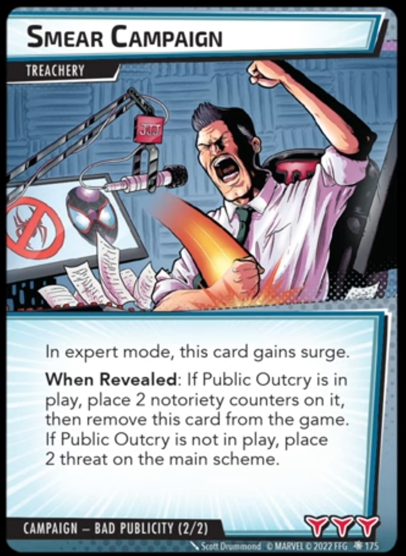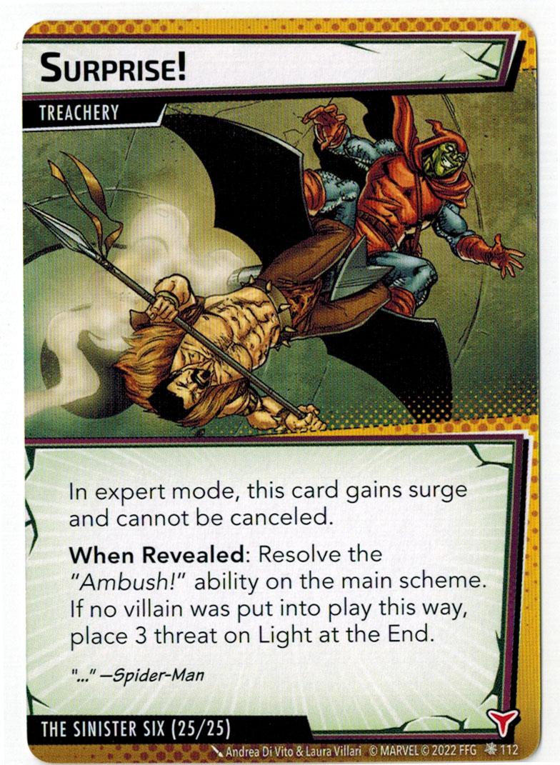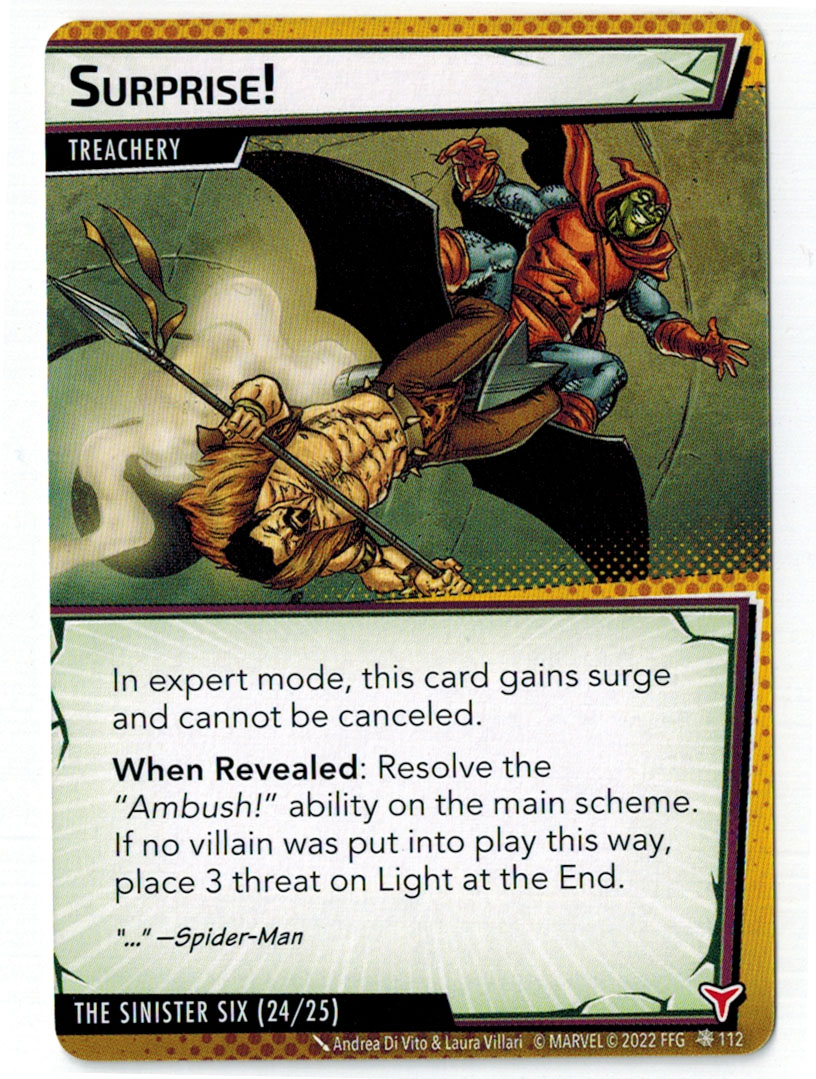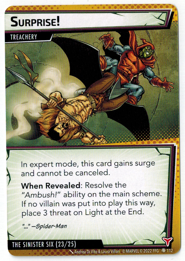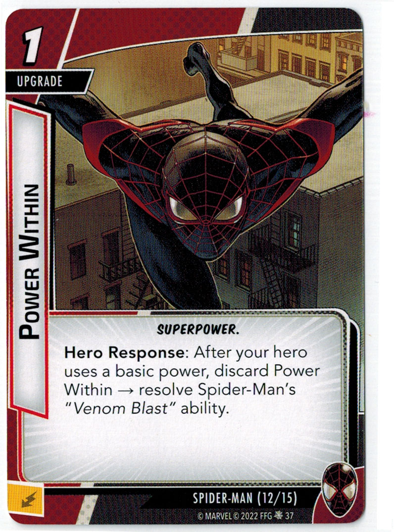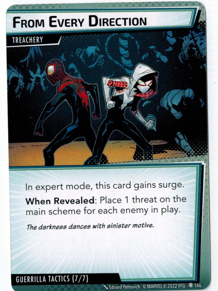 “The Symbiote Suit is just like the Venom ally, in that you can include it in any hero deck you want, unless you’re playing the Sinister Motives campaign, in which case you have to earn the ability to include it.” – FFG