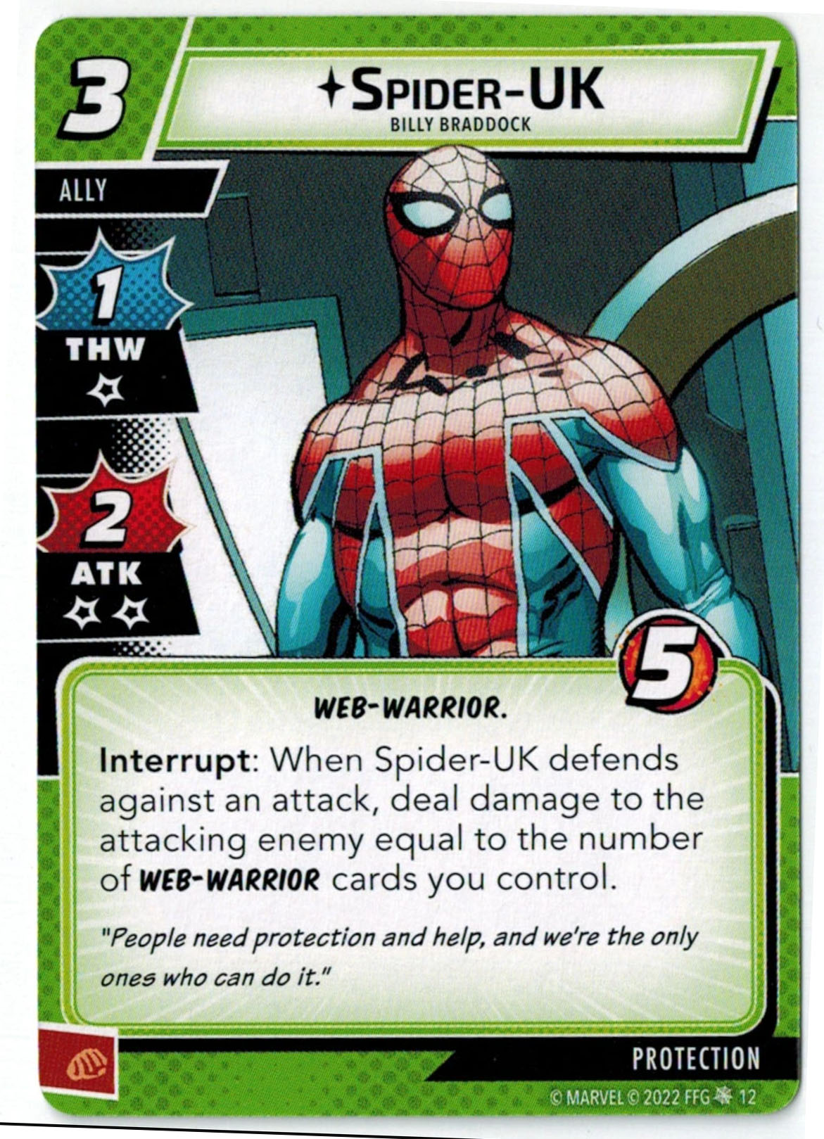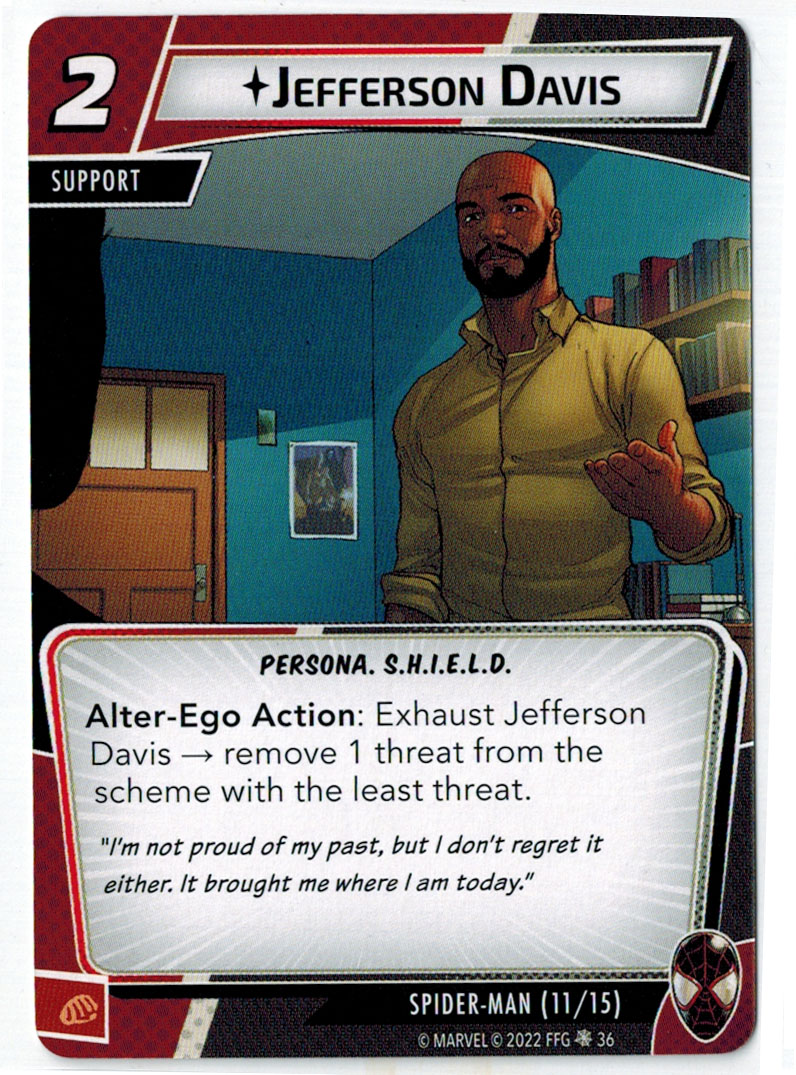 “The first is a basic ally card that I think you’ll find to be pretty fun. He’s a popular character, and you can include him in any hero deck you want—unless you’re playing the Sinister Motives campaign, in which case you have to earn the ability to use him.” – FFG