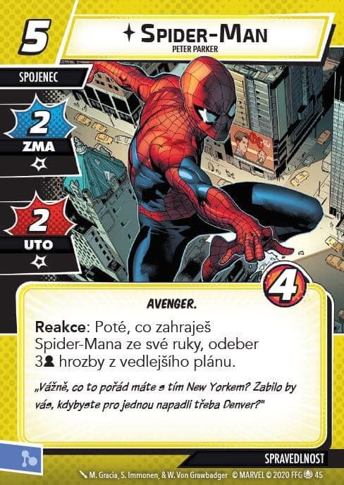 - Spider-Man: a Justice ally that removes 3 threat per player from a side scheme.