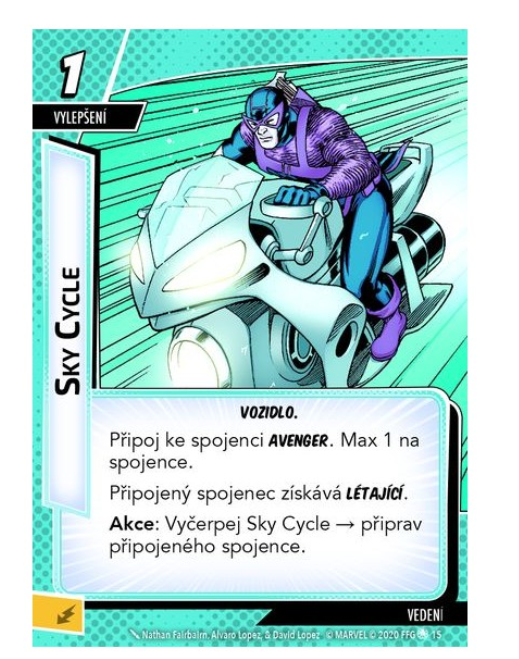 - Sky Cycle: 1 cost upgrade – attach to Avenger, ally gets aerial